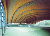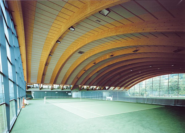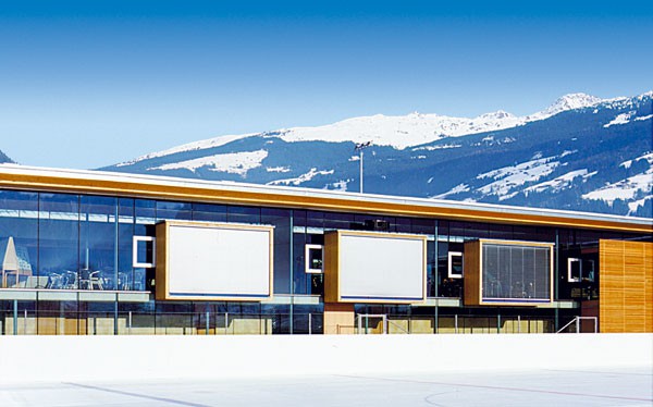 Die Gesamtanlage besteht aus zwei klar formulierten und ablesbaren Architekturelementen. Die bogenförmige Halle zeigt weithin sichtbar, was Holz in intelligenter Anwendung bei derartigen Hallenkonstruktionen leisten kann. Im Bereich der anderen Gebäudeteile wird durch die Anwendung verschiedener Holzwerkstoffe ein Ambiente geschaffen, das zwar an das Bild der klassischen Freizeitarchitektur anknüpft, jedoch eine eigenständige und zeitgemäße Erscheinung erhält. Im Gegensatz zum konventionellen Einsatz von Holz im übrigen Zillertal verdeutlicht das Projekt, was im Holzbau möglich ist, wenn der Werkstoff selbstbewußt und als gestaltendes Element in Verbindung mit zeitgemäßer Architektur verwendet wird. Gerade dieses Beispiel zeigt, dass gute Architektur in Holz kostengünstig umgesetzt werden kann, was bei den meist angespannten Finanzen von Gemeinden ein wichtiges Argument ist.