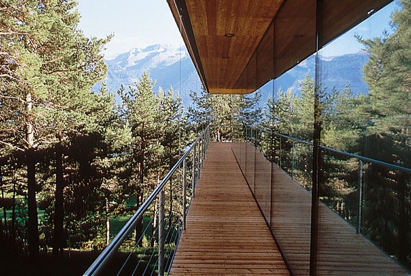 Das Projekt besticht durch die elegante Konstruktion in Holz und Stahl, die zeigt, wie mit Holzbau nicht nur gestaltet werden kann, sondern wie extreme Geländesituationen architektonisch vorbildlich gemeistert werden können. Gerade die besondere Herausforderung führt bei diesem Projekt zu einer außergewöhnlichen Lösung.