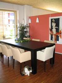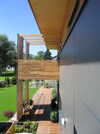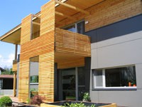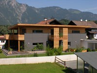 Das Einfamilienhaus H. in Kundl zeigt bereits an der Fassadengestaltung eine gelungene Komposition von großflächigen Faserzementplatten mit Holzelementen, wie beispielsweise horizontale Lattung und die Dachuntersicht mit Holzpanellen. Die Holzatmosphäre setzt sich auch in den Innenräumen weiter und gelangt durch das großzügig angelegte Grundrisskonzept zur Geltung.