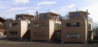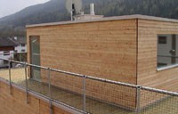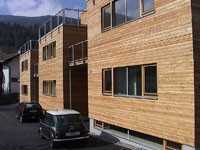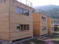 Die Reihenhausanlage in Götzens besteht aus drei Wohneinheiten. Das Kellergeschoß wurde in Massivbauweise ausgeführt. Innovative Details und der Einsatz diverser Holzarten und Holzwerkstoffe lassen individuelle Wohnräume mit Holzatmosphäre entstehen.
