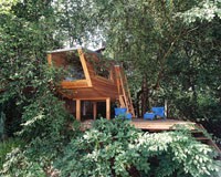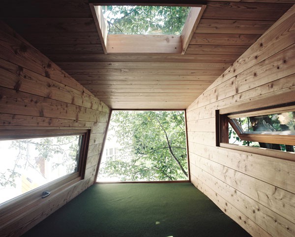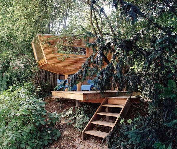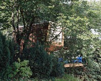 Das "Buschhaus" München wurde im Frühjahr 2005 in einem Garten in Gräfelfing bei München realisiert. Es dient den Kindern als Spielort und ist zudem den Gästen der Familie als besonderer Schlafplatz vorbehalten. Der geschlossene Körper steht auf Stützen in 1,50 m Höhe und ist in die benachbarten kleineren Bäume und Büsche eingefügt. Eine komfortable Terrasse mit Lärchenboden befindet sich gleich unter dem Buschhaus nahe dem Boden.