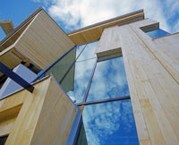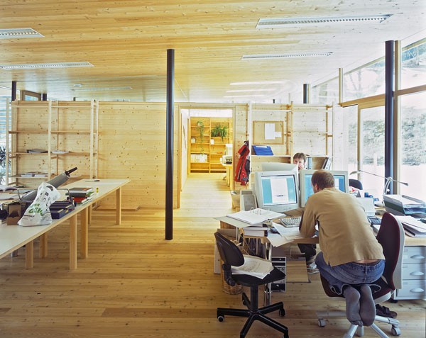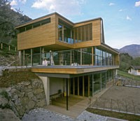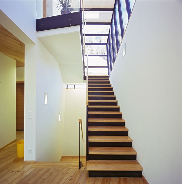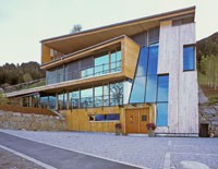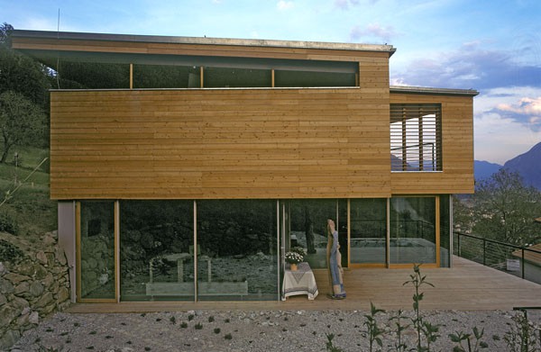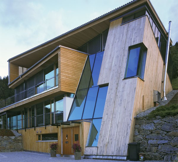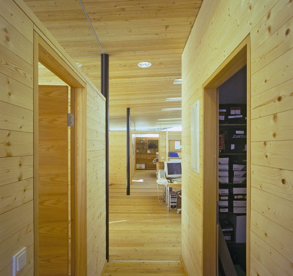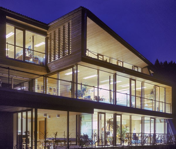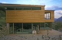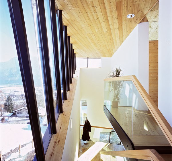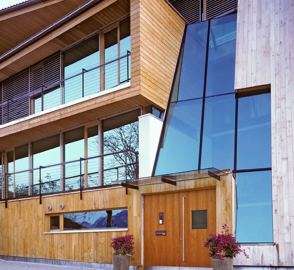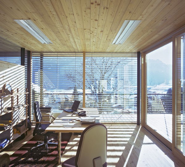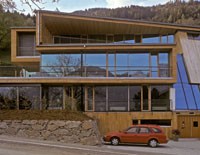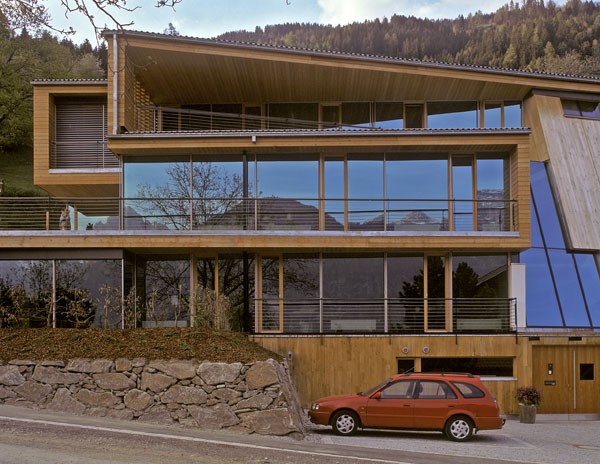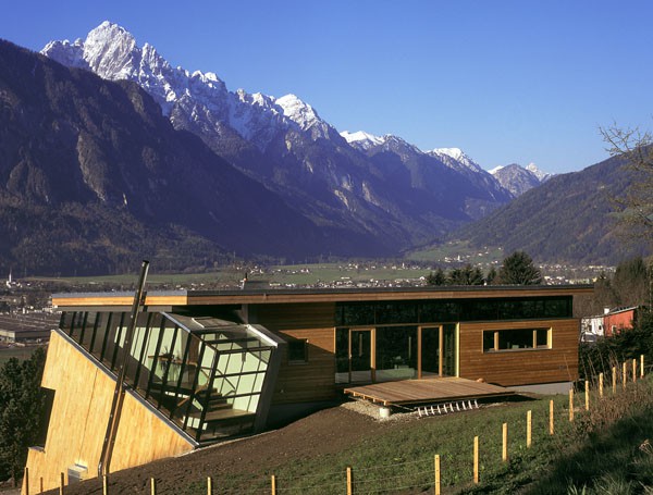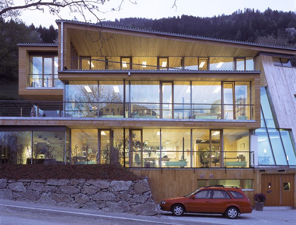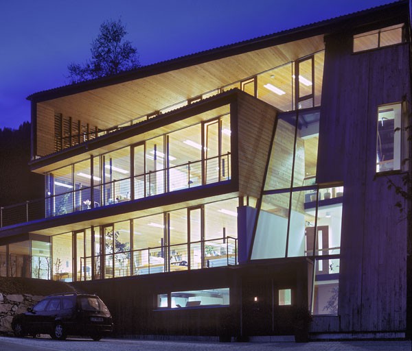 Das dreigeschossiges Bürogebäude liegt in extremer Hanglage und öffnet sich nach Süden Richtung Lienzer Becken. Jedes Geschoss des Niedrigenergiegebäudes hat vom Süden über Westen nach Norden hin einen zugeordneten Freibereich. So begleiten drei terrassenförmig angelegte Gärten das Haus im Westen. Im Osten setzt das externe Stiegenhaus als schiefer Eichenholzkörper einen Kontrapunkt zum horizontal ausgerichteten Baukörper. Das Gebäude kann je nach Gebrauch auch zu drei getrennten Wohneinheiten umfunktioniert werden. Im Süden sind schattenspendende Balkone bzw. Terrassen vorgelagert.