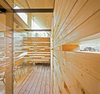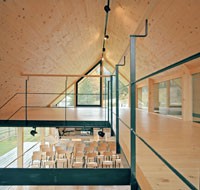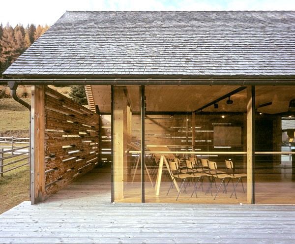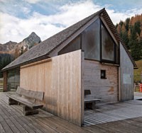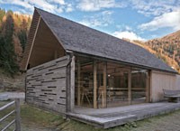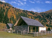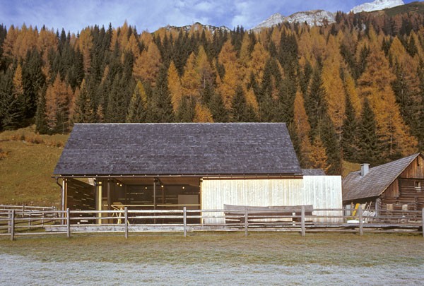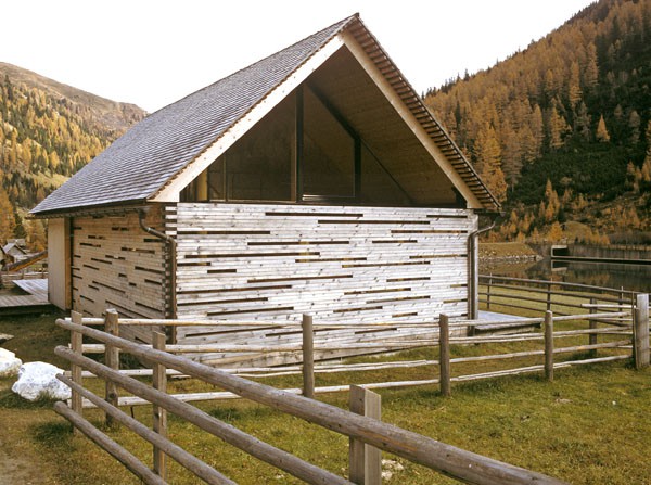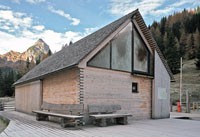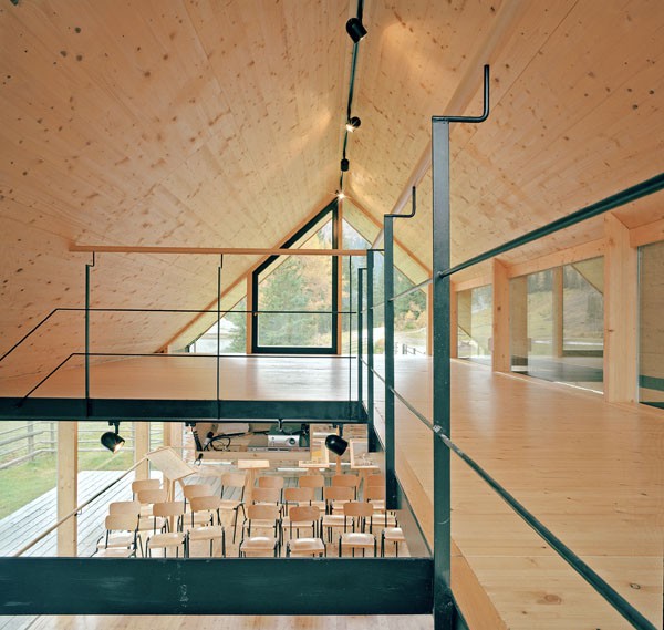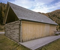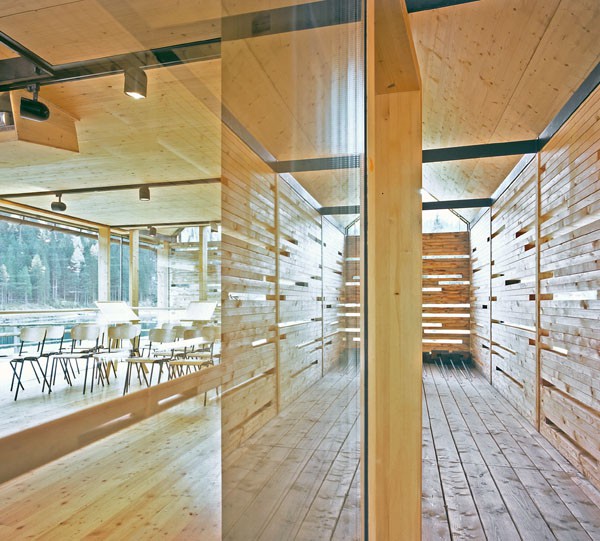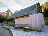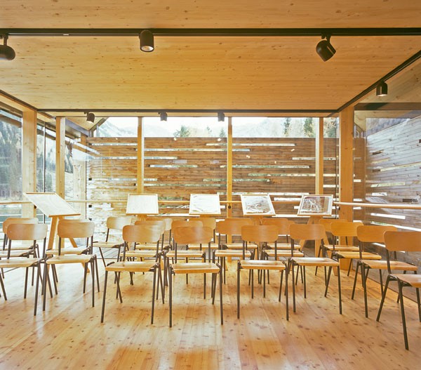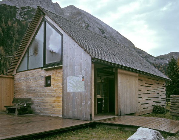 Das Informationszentrum im Naturpark Riedingtal ist ein Gebäude mit ausschließlicher Sommernutzung. Der erste Entwurf in Tetraederform wurde von der Naturschutzbehörde in Salzburg abgelehnt. Der zweite Entwurf interpretiert den traditionellen Baukörper neu und zeigt eine Kombination von Glas/Holzkonstruktionen mit Elementen in Blockbauweise. Eine Längs- und eine Querwand sind aus statischen Gründen über Eck und in Blockbauweise errichtet. Der eigentliche Informationsraum ist ein eingesetzter Glaskörper. Das Dachgeschoss ist eine Dreiecksfalt-Konstruktion aus Santner Großtafeln (keine Sparren und Pfetten). Die Dacheindeckung besteht aus Lärchenholzschindeln aus dem Lungau. Im Winter sind alle Glasfassaden und Zugänge mit Schiebeelementen (Rahmen mit senkrechter Holzschalung) geschlossen. Sie dienen als Schutz vor dem Luftdruck der Staublawinen die teilweise erst 30m vor dem Zentrum zum Stillstand kommen. Das Holz des gesamten Gebäudes ist nicht behandelt, es soll natürlich verwittern.