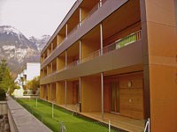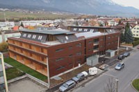 Die mehrgeschossige Wohnanlage in Innsbruck ist in Holzbauweise errichtet und erfüllt den Niedrigenergiestandard. Die Baukörper sind in einer Ost/West-Ausrichtung angeordnet. Die insgesamt 32 Eigentumswohnungen sind in 2- und 3-Zimmerwohnungen sowie 4 Dachgeschossmaisonetten unterteilt und erfüllen die unterschiedlichsten Anforderungen. Die gesamte Anlage wird vom warmen und geräuschdämpfenden Material Holz dominiert.