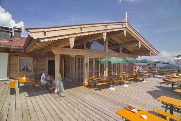 Die Tanzbodenalm wurde 2005 in sechsmonatiger Bauzeit als Bergrestaurant mit Bedienung für den Sommer- und Winterbetrieb von der Agragemeinschaft Brandstadl errichtet. Ein besonderes Augenmerk war auf eine, möglichst einer Almhütte nachempfundenen Bauweise, zu legen. Das verwendete Holz für den Dachstuhl, die Fassadengestaltung und den Innenausbau bis hin zu den Tischplatten stammt von einem alten Bauernhof und einer Tenne. Das Bauwerk ist zur Gänze unterkellert. Ein wesentliches Kriterium war der hohe Vorfertigungsgrad der Wandelemente und das geringe Transportgewicht der Bauteile, da die Wegbenützungskosten nach dem Gewicht berechnet werden.
