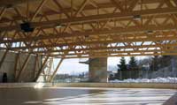 Auf Wunsch der Gemeinde Götzens entstand ein Eislaufzentrum für die Wintermonate, wobei die überdachte Fläche im Sommer als Veranstaltungszentrum genutzt wird. Innerhalb der Rekordbauzeit von etwas über 3 Monaten entstand eine Holzkonstruktion mit einer Spannweite von über 40 Meter. Die Fachwerkbinder wurden im Werk in Form von transportfähigen Teilen vorfabriziert und auf der Baustelle komplettiert bzw. verbaut.