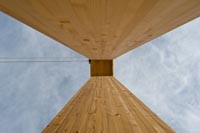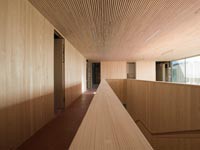 Insgesamt 685 m³ Holz wurden im kompletten Bau eingesetzt: Außen Tanne, innen Weißtanne. Die Entscheidung für den Holzbau war naheliegend: Beide Organisationen sind zu einem großen Teil Waldbesitzer und beiden ist die Förderung der regionalen Wertschöpfung ein Anliegen. Das Gebäude ist ein Aushängeschild für die Möglichkeiten des modernen Holzbaus.