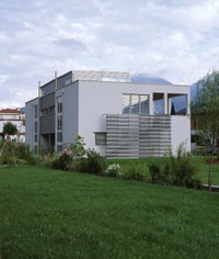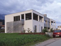 Das Wohnhaus der Familie Hirsch in Zirl zeigt in der Fassadengestaltung eine Komposition von Putz und Holzwerkstoffplatten. Cembonit sind silizium-kalkhaltige Platten, die mit mineralisierten Zellulosefasern verstärkt werden. Sie sind nicht brennbar, verwesen nicht und sie sind beständig gegen Insekten, Nagetiere und Schimmel.