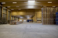Bei der Logistikhalle entschied man sich für eine Holzständerkonstruktion (Leimbinder und Bretter aus Fichte) mit einer Lärchenholz-Fassade.