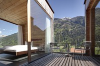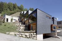 Die Apartments liegen im Tiroler Gebiet der Silvretta. Der Name „aradira“ stammt aus dem räteromanischen Sprachgebrauch und bedeutet wörtlich übersetzt Ackerland. Dies entspricht der früheren Nutzung dieses Grundstückes. Das Gebäude schmiegt sich treppenförmig entlang des Hanges und ermöglicht somit für alle 4 Apartmenteinheiten einen ungestörten Blick in die Natur. Gleichzeitig wird dadurch ein Maximum an Privatsphäre für die Bewohner der einzelnen Wohneinheiten gewährt. Bei der Tragkonstruktion, Dämmung und Materialisierung des Gebäudes wurde größter Wert auf natürliche Materialien gelegt. Das gesamte Traggerippe der Wände und Decken ist als Holzskelettbauweise ausgeführt. Als Wärmedämmung der Außenhülle und Zwischendecken kam Mineralwolle zum Einsatz. Die Außenfassade der Längsachsen wurde als hinterlüftete Fassade mit natürlichem Schiefer (25* 35cm) ausgeführt. Die geschlossenen Außenflächen der Querachsen sind mit rohen Dreischichtplatten in Lärche verkleidet. Bei der Wand- und Deckenverkleidung im Inneren kam eine unbehandelte Lärchenschalung zur Anwendung. Die natürliche Belichtung des Gebäudes erfolgt über große Fensterflächen im Obergeschoss, welche über die Querwände die Natur und das imposante Bergpanorama in den Raum zu holen scheinen. Auf der Eingangsebene werden die Schlafzimmer ebenfalls über die Querwände belichtet. Während der Wintermonate werden so die Wohnungen durch die Sonneneinstrahlung aufgeheizt und garantieren dadurch einen minimalen Einsatz der Heizung. Während der Sommermonate gewährleistet der Sonnenschutz an der Westseite ein notwendiges Beschatten und verhindert eine Überhitzung der Räume. Das Bauwerk ist als Niedrigenergiehaus konzipiert. Die Erdwärmepumpe liefert die notwendige Energie für die Heizung und das Warmwasser. Als Energieverteilung dient die Fußbodenheizung und die Kachelöfen, welche über das Warmwasser und über eine Holzfeuerung gespeist werden.