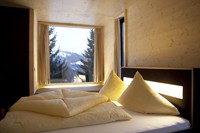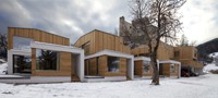 Das Apartmenthaus Haus Refugio Laudegg steht am Fuße der Burg Laudegg in Ladis. Die neu errichteten Apartments und Zimmer liegen ca. 30 m neben dem familiären Gastbetrieb und bilden gemeinsam mit der Burg, dem Gasthof, dem See und der imposanten Bergwelt ein einheitliches Ensemble. In enger Zusammenarbeit mit dem Denkmalamt und dem Naturschutz entwickelte das Architektenteam Ventira Architekten eine für diesen Ort stimmige Komposition. Die neuen Beherbergungsbauten sollen an diese traditionellen Stallungen am Fuße der Burg erinnern. Deshalb die feingliedrige Kleinteiligkeit der Baukörper und die ortstypischen Materialien. Grosse, punktuelle Fenster sollen den Blick auf das Wesentliche lenken und so die Natur der Tiroler Berge in die Stube holen. Das Erdgeschoss in Massivbauweise mit Putz die Obergeschosse in Holzbauweise. Es wurde stark darauf geachtet heimische, natürliche Materialien einzusetzen. Die Dachlandschaft wurde ganz bewusst als sanfte Steildächer, welche begrünt sind, ausgeführt. Dadurch entsteht ein stimmiges Bild im Umfeld der denkmalgeschützten Burg Laudegg.