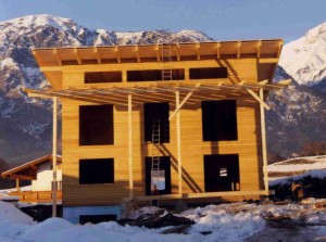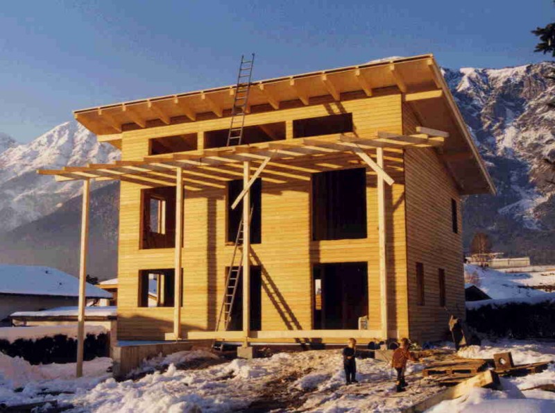 Niedrigenergiegebäude in Tafelbauweise, wobei die Decke massiv mit Brettschichtholzelementen hergestellt wurde. Beheizt wird das Gebäude mittels Gasheizung, die Warmwasseraufbereitung erfolgt zusätzlich über eine Solaranlage.