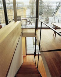 Der Typus städtische Villa wird hier in einer modernen, zeitgemäßen Bauvariante gezeigt und bekommt durch den Werkstoff Holz eine besondere Note. Die Konstruktion stellt eine Kombination aus Holzrahmenbau und Skelettbau - durch Stahlstützen ergänzt - dar und wurde in überzeugender Weise umgesetzt.