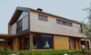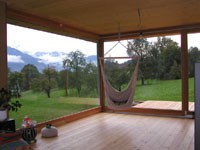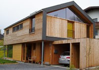 Der Einsatz diverser Holzwerkstoffplatten in Komposition mit einer Stülpschalung aus Lärchenholz setzt gestalterische Akzente. Die Energieversorgung erfolgt mittels einer Solaranlage und einer Pelletsheizung.