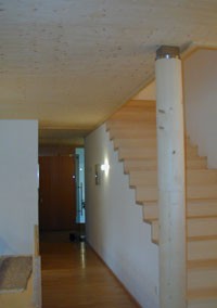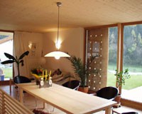 Eine klare architektonische Formensprache prägt das Niedrigenergiegebäude in Weer. Eine kontrollierte Wohnraumlüftung sorgt ganzjährig für ein gesundes und angenehmes Raumklima.