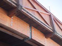 Etwas unterhalb des 1740m hoch gelegenen Ortskerns von Obertauern führt eine mächtige Bogenbrücke über die Katschbergbundesstraße. Das einfeldrige Objekt liegt im Grundriss in einer Geraden und überspannt die B99 als schiefe Brücke. Die Widerlagerkonstruktion beherbergt ein Bankinstitut sowie Garagen für Fahrzeuge der Liftgesellschaft. Tunnelartig überspannen massive Bögen die Bundesstraße, um den Wintersportlern Zugang bis zur Talstation der Grünwaldkopfbahn zu bieten. Kompromisslose Bauweise und günstiger konstruktiver Holzschutz verhelfen dem Objekt zu einer langen Lebensdauer. Die Brücke am Grünwaldkopf hat sich über 11 Jahre bewährt. Deshalb und aufgrund der beträchtlichen Breite von über 20m ist sie ein imposanter Holzbrückenbau. Gesamtkosten: € 508.710 Brückenklasse: Fußgänger-Radwegbrücke Klasse I
