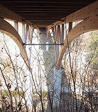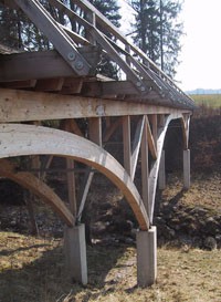 Die Bogenbrücke über den Schamingbach zeichnet sich durch einfache Lösungsansätze hinsichtlich der Wahl der verwendeten Verbindungen aus und fügt sich durch ihre filigrane Bauweise elegant in ihre Umgebung.