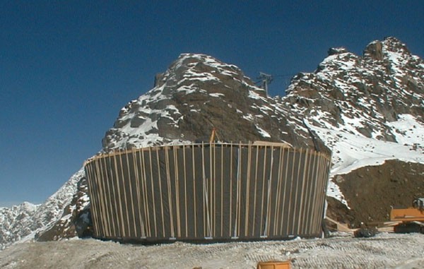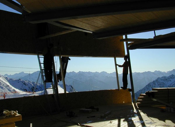 In 3150 Meter Höhe mitten in der Stubaier Gletscherwelt befindet sich das Gipfelrestaurant Jochdohle. Die tragende Konstruktion besteht aus Stahl mit eingehängten Holzelementen. Die utopisch anmutende Architektur wird durch die futuristisch wirkende Edelstahlverblechung unterstrichen.