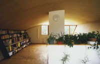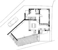 Das Einfamilienhaus D./M. liegt auf einem winzigen Grundstück an der Brandenburger Ache. Der Zubau an das alte Haus aus den 60igern besteht aus einer Konstruktion aus Stahlstützen, Brettschichtholzträgern und einer Betonscheibe. Die verlorene Gartenfläche wird durch die Dachterrasse des Zubaues ersetzt. Die subtile Variante des Satteldaches aus gebogenen Brettschichtholzträgern sorgt für ein eigenwilliges Raumerlebnis und zeigt einen intelligenten und heiteren Umgang mit den örtlichen Bauvorschriften.