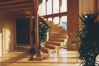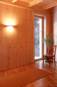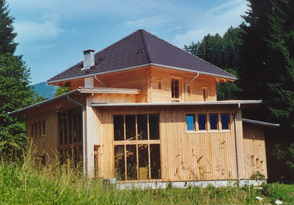 Die bekannte Riegelbauweise sowie die traditionelle Blockbauweise wurden gemeinsam mit dem Holz100-Wandsystem in einem Baukörper angewandt.