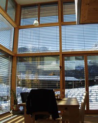 Das zweigeschossige Einfamilienhaus Stainer weist einen L-förmigen Grundriss auf. Der Wohnraum im EG öffnet sich im Essbereich zu einem zweigeschossigen Raumerlebnis. Das Walmdach ist 5° geneigt.