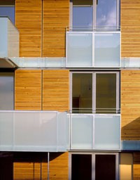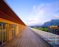 Die kompakten Baukörper (gutes Verhältnis von Außenoberfläche zu beheiztem Volumen) bieten einerseits die Basis für die effiziente Anwendung innovativer und ökologischer Gebäudetechnik und lassen andererseits trotz der wirtschaftlichen Bebauungsdichte großzügige, nutzbare Außenräume entstehen. Das Konstruktionsprinzip ergibt ein wirtschaftliches Grundkonzept mit massiven Bauteilen als Speichermassen sowie einer optimierten Flächenausnützung durch den optimalen Dämmquerschnitt der Leichtbauwände in Holzbauweise. Vorgesetzte Sonnenschutzlamellen aus speziell witterungsbeständig behandeltem Holzlamellen ("Thermo timber") verstärken durch den visuellen Charakter eines Holzbaus die Wohnlichkeit der privaten Freibereiche und schaffen Filter für den privaten Innenbereich. Die großzügigen Dachterrassen aus Lärchenbohlen werden durch auskragende Vordächer aus Konstruktionsleimholz geschützt. Ein pavillonartiger Bewohnertreff mit auskragendem Massivholzdach dient als zentraler Punkt des Gemeinschaftslebens und wird mit einem Platz unter schützendem Baumdach nach außen erweitert. Auf die sorgfältige Ausbildung konstruktiver Detailpunkte wie Fensteranschlüsse hinsichtlich Luftdichtigkeit und Energieeffizienz wird größter Wert gelegt. Holzfenster mit Alu-Deckschalen (Glas U 0,6) bieten das optimale Verhältnis hinsichtlich Errichtungskosten, Langlebigkeit und Recyclebarkeit. Die Warmwasserbereitung erfolgt über 380 m2 Sonnenkollektoren, die "Energiezentrale" - der Pufferspeicher - ist in seiner Dimension im Außenraum erlebbar und zeigt sich als ein mit Kletterpflanzen beranktes Schauobjekt. Das Projekt wurde mit dem Salzburger Landesenergiepreis - 1.Preis Kategorie Geschoßwohnbau ausgezeichnet.