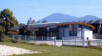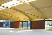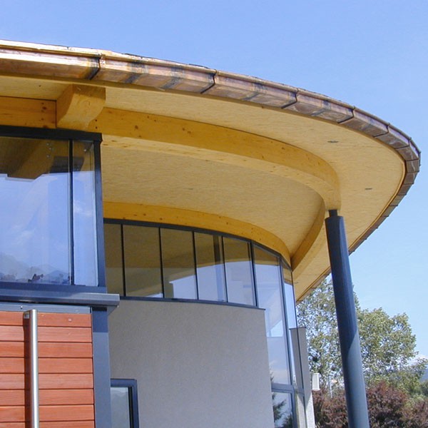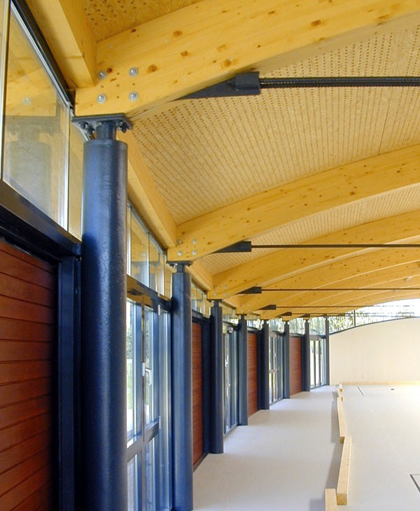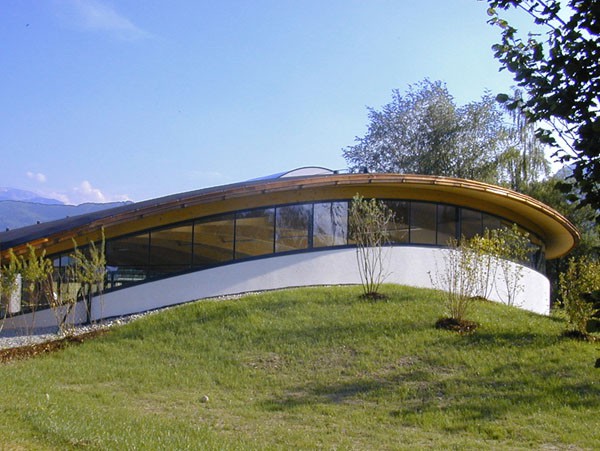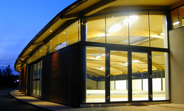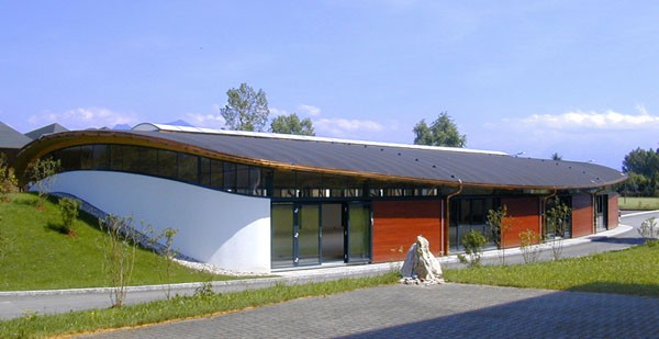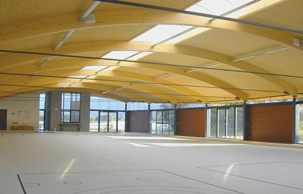Die Stocksporthalle in Anif ist eine Erweiterung der bestehenden Sportanlage und bietet vielfältige Nutzungsmöglichkeiten: Stockschießen, Feuerwehr-, Sport- und Schulfeste, Pressekonferenzen, Ausstellungen etc. Das Gebäude schmiegt sich in die Landschaft. Eine schwebende, durch ein Oberlichtband vom Mauerwerk abgehobene, gekrümmte Dachschale aus Holz dominiert das Erscheinungsbild der Halle; durch die Kombination des Tonnendaches mit den unterschiedlichen Radien des Grundrisses, entsteht eine attraktive, abwechslungsreiche Dachkontur, die mit ihren teilweise zweifach gekrümmten Hölzern die fast unbegrenzten Gestaltungsmöglichkeiten des Baustoffs Holz dokumentiert. Es entsteht ein Gebäude das von allen Standorten aus ein völlig verändertes Erscheinungsbild zeigt.