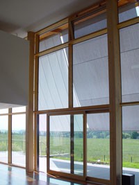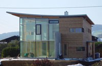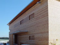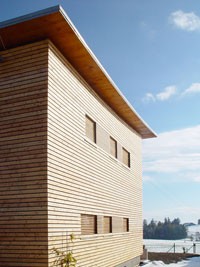 Das Einfamilienhaus in Obertrum in Flachgau ist aus bewussten, ökologischen Erwägungen in Holzbauweise errichtet worden. Das Niedrigenergiehaus beruht auf dem Konzept der kontrollierten Wohnraumlüftung sowie passiver Solarnutzung. Im Wohnraum schwebt die Schlafbox, diese verfügt über Lüftungskorridore zur Außenluft.