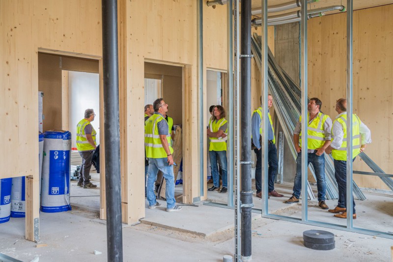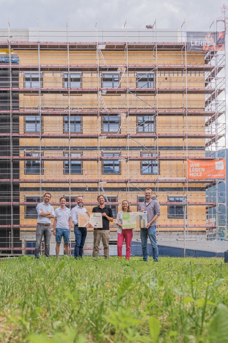 Im Rahmen des EU-Projekts Build-in-Wood organisierte proHolz Tirol Ende Juni eine Besichtigung der Baustelle des bislang ersten großvolumigen Holzbaus des Bezirkskrankenhaus Schwaz. Dieser Bau speichert durch seinen hohen Holzanteil langfristig rund 500 Tonnen CO2.