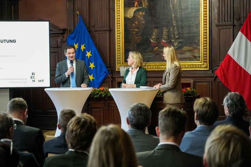 In feierlichem Ambiente fand am 8. November 2022 der erste Bioeconomy Austria Netzwerkempfang an der Universität für Bodenkultur Wien statt. Landwirtschaftsminister Norbert Totschnig und Klimaministerin Leonore Gewessler verkündeten den erfolgreichen Aufbau des bundesweiten Netzwerkes für Bioökonomie.
