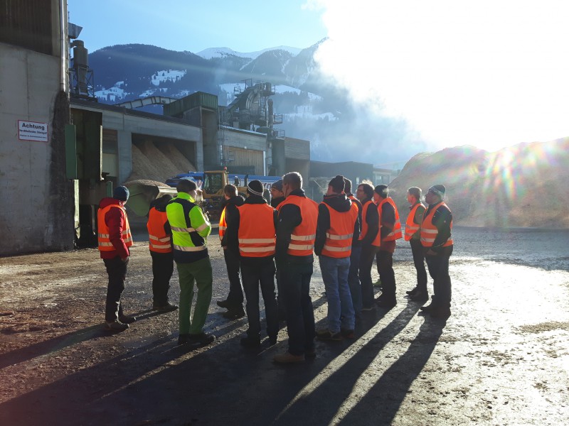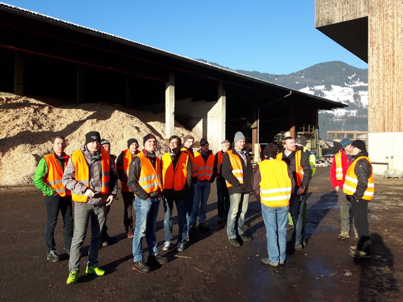 Den Start bildete dabei ein Betriebsbesuch bei der Firma binderholz in Fügen, bei dem wir von der Rundholzsortierung bis zum Sägewerk und der Pelletsherstellung eine erste Baumverfolgung entlang der Wertschöpfungskette aufnahmen. Danach gings weiter ins BSH Werk nach Jenbach, in dem wir die Praxis von umgesetzter Industrie 4.0 erleben konnten.