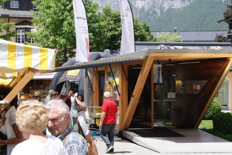 Zu Beginn von „Holz on Tour“ stand ein Architektenwettbewerb, den Stefan Thalmann aus Berg im Drautal gewonnen hat. In der folgenden Angebotsphase erhielten die Zimmerei Unterluggauer aus Lienz und die Tischlerei Decker aus Itter den Zuschlag, den Auf- und Ausbau zu realisieren. Nach einer guten Zusammenarbeit der verschiedenen Gewerke gelang es in wenigen Wochen Bauzeit dieses Beispiel Tiroler Handwerkskunst fertig zu stellen.