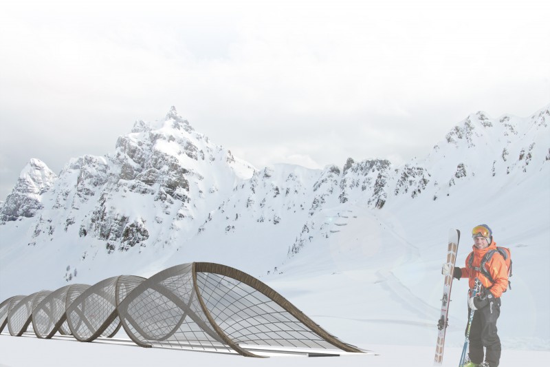 Bild 2: Nicht nur Bergstationen wissen künftig durch eindrucksvolles Design zu überzeugen. Mit „Wood Twist“ entwickelte Christian Mak eine neuartige Überdachungslösung für „Zauberteppiche“
