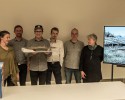 Bild 1: Die Jury und der Gewinner des Wettbewerbs. vl. (Kathrin Treutinger (Entrepreneurship and Marketing, Uibk), Rupert Maleczek (Uibk), Eva Moser (proHolz-Tirol & Inno4wood), Walter Klasz (Lehrgangsleiter Uibk), Fabian Venier (Gewinner), Michael Peintner (Sunkid), Andreas Jantscher (Grafik Designer), Alison Grace Martin (Artist)