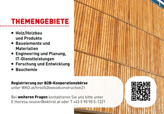Programm und Anmeldung: WKO.at/tirol/b2bwoodconstruction21