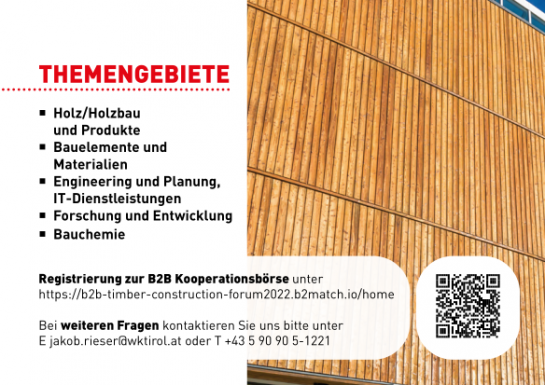 Programm und Anmeldung: WKO.at/tirol/b2bwoodconstruction22