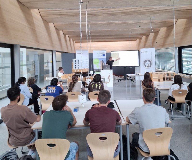 Der Workshop begann mit einer Einführung durch proHolz Tirol, bei der die Geschäftsfelder Holzinformation, Holzausbildung und Holcluster vorgestellt wurden. Die Schüler*innen erhielten eine Vielzahl von Informationsmaterialien zum Werkstoff Holz - digital und in Form von Magazinen.