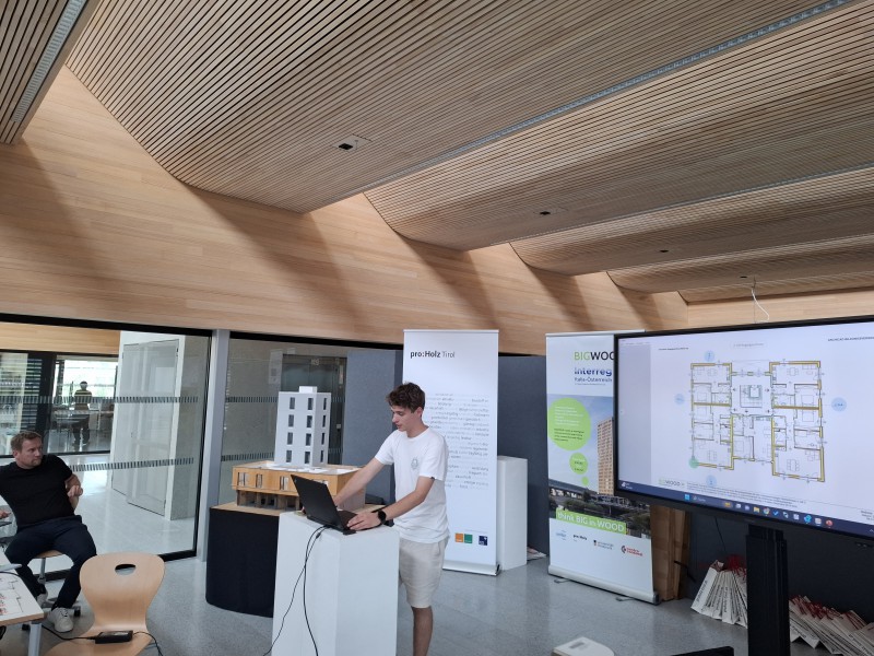 Am 27. Juni 2024 fand in der HTL Bau Informatik Design in Innsbruck der Workshop „BIGWOOD“ statt, organisiert von proHolz Tirol. Die Veranstaltung richtete sich an Schüler*innen der 4. Klasse Hochbau und bot eine Plattform, um den mehrgeschossigen Holzwohnbau intensiv zu erkunden.