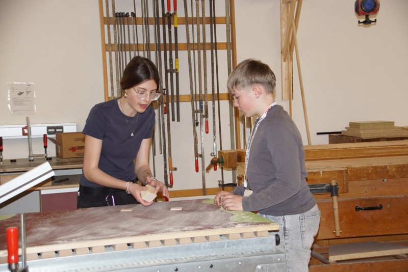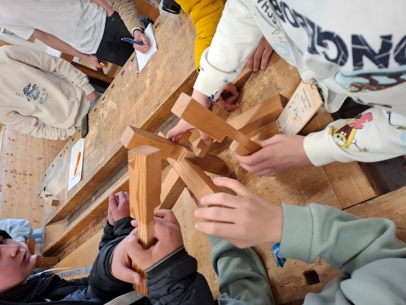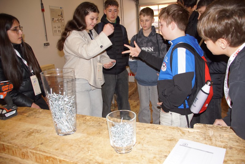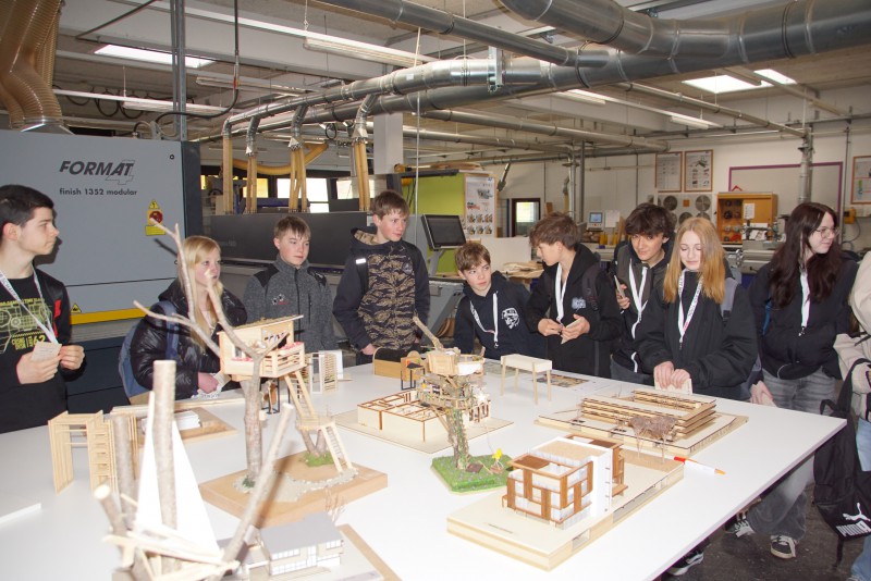 Im Zentrum der Veranstaltung stand ein abwechslungsreicher Stationenbetrieb, der den Jugendlichen einen direkten Zugang zum Werkstoff Holz ermöglichte. An zahlreichen Stationen konnten sie selbst Hand anlegen und ihr Geschick unter Beweis stellen. Dabei reichte das Spektrum von klassischen Techniken wie Sägen und Hobeln bis hin zum Einsatz moderner, computergestützter Maschinen. Betreut wurden die Stationen von Lehrkräften sowie Schüler*innen der HTL Imst, die mit großem Engagement durch den Tag führten und den Teilnehmer*innen wertvolle Einblicke in Ausbildung und Praxis vermittelten.