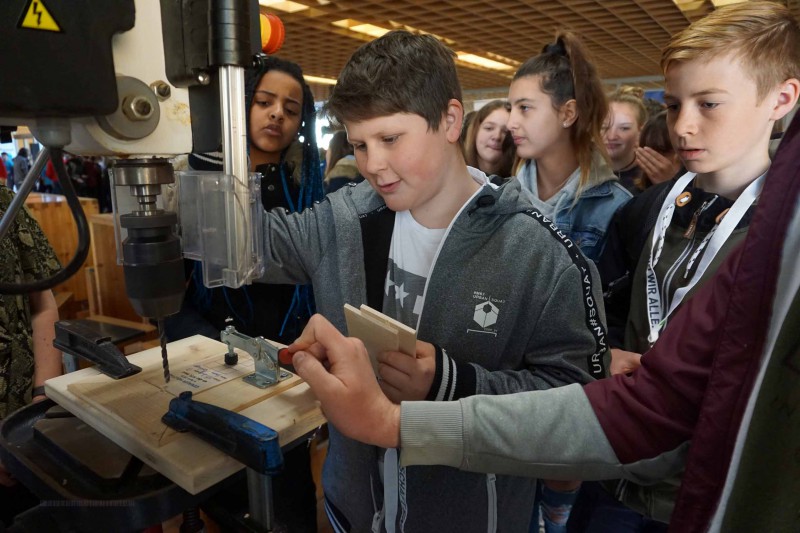 Auf dem Schulgelände und in den Werkstätten der Höheren Technischen Bundeslehranstalt Imst drehte sich den ganzen Tag alles rund um den wichtigsten Tiroler Roh- und Werkstoff Holz. Die Jugendlichen konnten an 15 unterschiedlichen Stationen kräftig sägen, schleifen, tüfteln, und handwerken. Dabei unterstützten die LehrerInnen der HTL Imst die Schü-lerInnen mit ihrem fachlichen Wissen und sorgten für eine spannende und abwechslungsreiche Zeit.