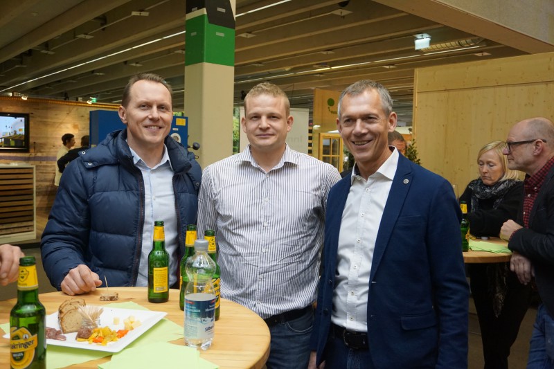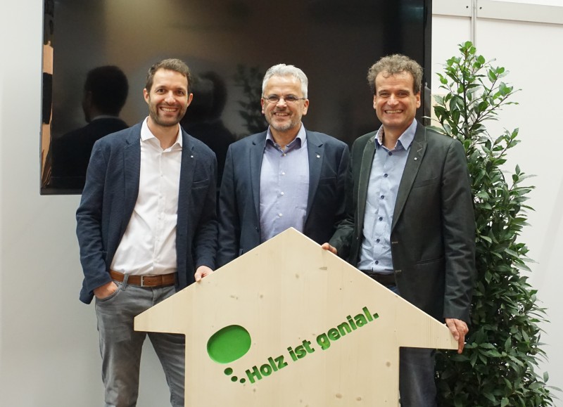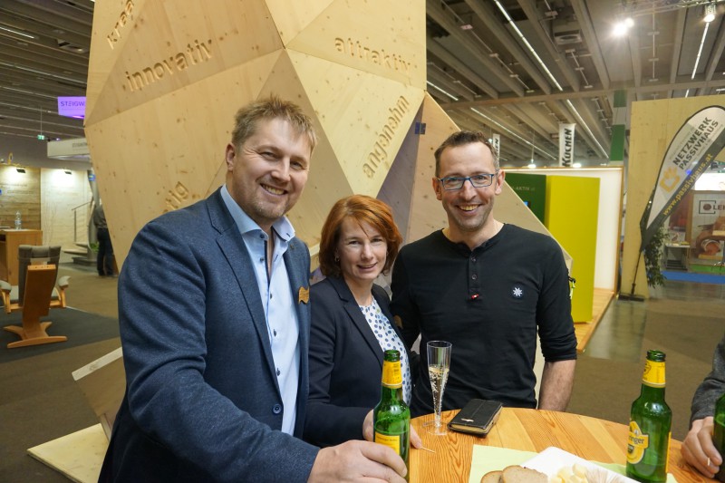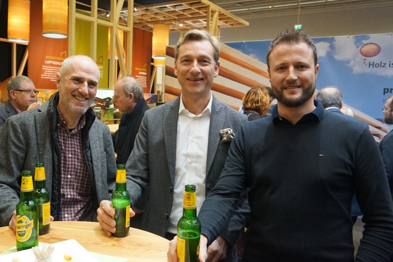 Bild 3: Zimmermeister und Aussteller aus dem „Holz ist genial“-Areal unter sich (v.l.n.r.): Christian Egger von Holzbau Schafferer in Navis, Karl-Heinz Eppacher von Dach+Fach Holzbau in Polling und Johannes Erler von Holzbau Erler in Tux