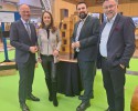 V.l. Direktor Christian Mayerhofer (Geschäftsführer CMI), Saxophonistin Susan P, Landtagsabgeordneter Christoph Appler, Rüdiger Lex (Geschäftsführer proHolz Tirol)