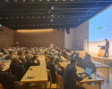Unter dem Titel „Holzbau fachübergreifend denken. Gemeinsam ans Ziel“ sprach Arch. DI Conrad Messner, Geschäftsführer von DINA4 Architektur in Innsbruck, über integrale Planung im modernen Holzbau. Im Mittelpunkt stand die neue Zentrale der Tiroler Versicherung in Innsbruck, die mit acht Geschossen als Meilenstein des urbanen Holzbaus gilt. Ergänzend wurden weitere interdisziplinär geplante Holzbauprojekte präsentiert sowie ein Ausblick auf die zukünftige Bedeutung von Holz im Gesundheitsbau gegeben. Beim anschließenden Netzwerken nutzten zahlreiche Gäste die Gelegenheit zum Austausch.