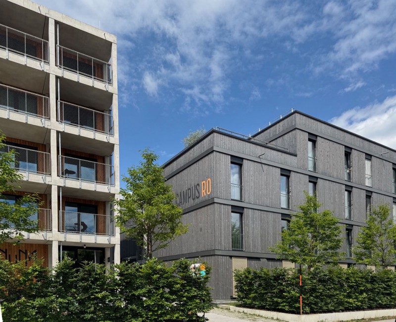 Der Auftakt war das Studierendenwohnheim Campus RO mit 211 Einheiten in Holz-Beton-Hybridbauweise. Tragstruktur und Wände bestehen aus Holz, Decken aus Holz-Beton-Verbund. Fachvorträge der Technischen Hochschule Rosenheim und des Holzbauunternehmens Huber & Sohn boten Einblicke in energieeffizientes Bauen, gefolgt von einer Wohnheimbesichtigung und einem moderierten World Café.
