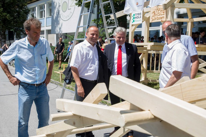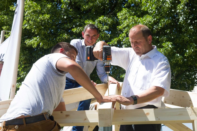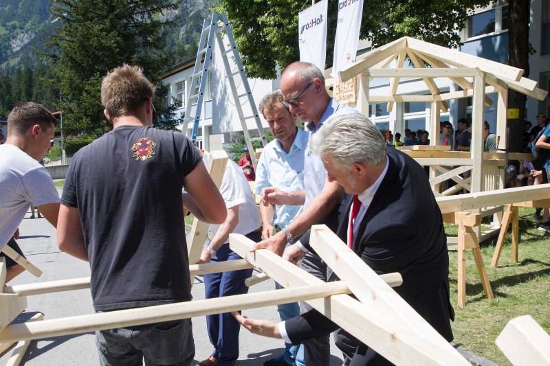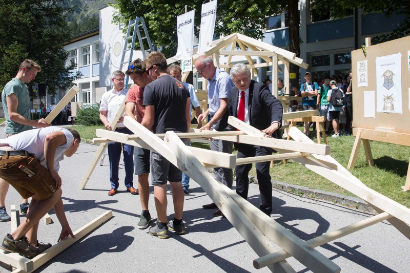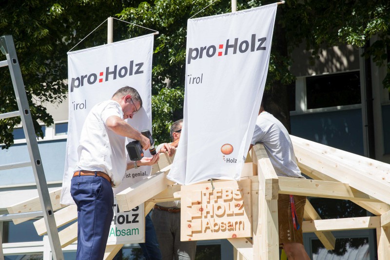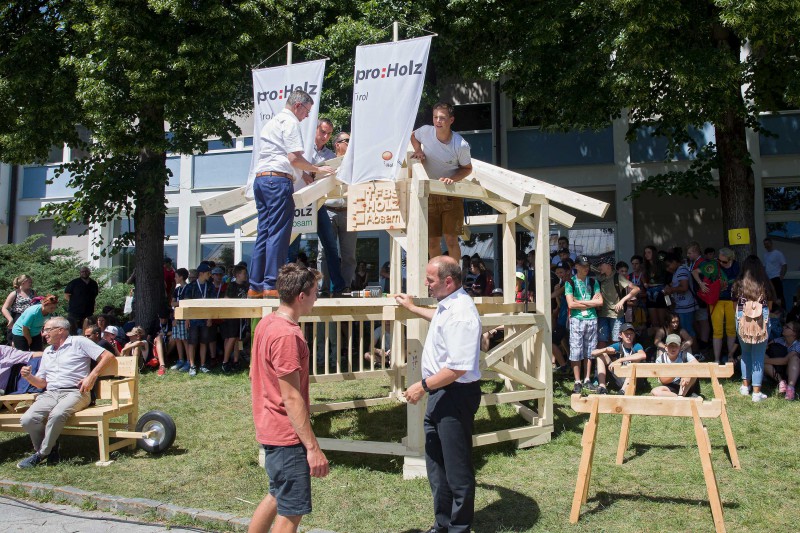 Ende Juni veranstaltete proHolz Tirol im Rahmen des Interreg-Projekts „Inno4wood“ seinen mittlerweile traditionellen „Tag des Holzes“ an der Fachberufsschule für Holztechnik in Absam. Der Tag startete mit der Holzolympiade mit rund 300 Tiroler SchülerInnen aus Neuen Mittelschulen. Im Anschluss fand der „Branchentag Holz“ mit Vorträgen für UnternehmerInnen statt. Beim abschließenden Sommerfest mit Gästen aus der Forst- und Holzwirtschaft, Politik, Bildung und Wissenschaft fand der Tag seinen Ausklang.