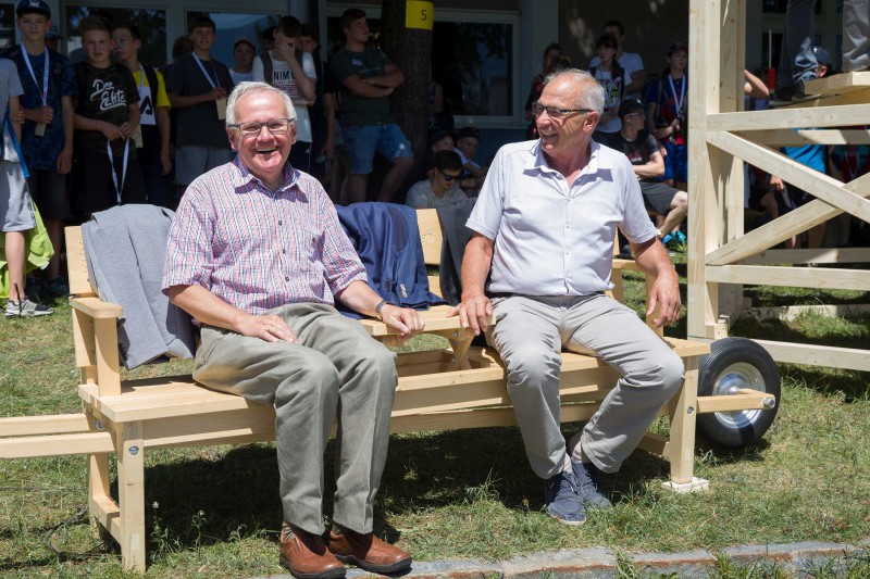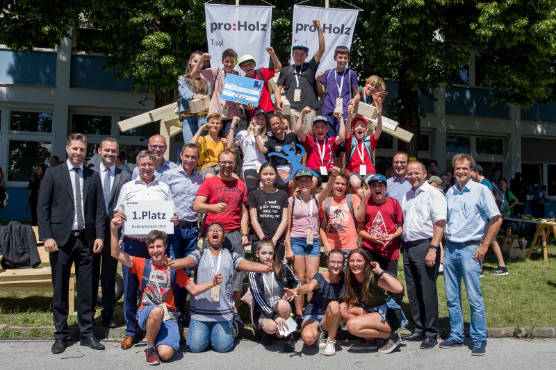 „Zusehen und selbst ausprobieren“ lautete das Motto bei der Holzolympiade. Dabei gab es für die Jugendlichen aber auch viel Wis-senswertes rund um Tirols wichtigsten Roh- und Baustoff Holz. An 19 verschiedenen Werkstationen stellten die SchülerInnen ihre Geschicklichkeit und ihr Wissen unter Beweis und kämpften um den Tagessieg. Neben Sägen, Hobeln und Drechseln gab es auch interessante Einblicke in die hochmoderne technische Ver- und Bearbeitung von Holz, wie zum Beispiel an der CNC- und Kantenanleimmaschine. Die Fachlehrer vor Ort, LehrerInnen von weiterführenden Schulen, ausgebildete Waldpädagogen sowie engagierte UnternehmerInnen der Tiroler Holzbranche standen den SchülerInnen dabei zur Seite und sorgten für einen span-nenden Tag. „Mit dieser Veranstaltung wollen wir den Jugendlichen einen spielerischen Zugang in die vielfältige Berufswelt der Forst- und Holzwirtschaft ermöglichen“, so proHolz Tirol-Vorstandsvorsitzender Karl Schafferer. Am Ende des Tages folgte die Siegerehrung, die von LHStv. ÖR Josef Geisler persönlich vorgenommen wurde. Die ersten drei Klassen erhielten jeweils ein Preisgeld für ihre Klassenkasse, ge-sponsert von der Hypo Tirol Bank.