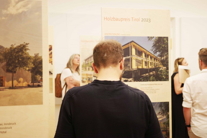 Als Nächstes wird die Wanderausstellung zum Holzbaupreis Tirol 2023 über den Sommer im Atrium des Landhaus 2 in der Heiliggeiststraße präsentiert.