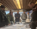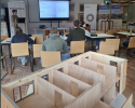 Die Schüler*innen arbeiteten in 4 Gruppen an speziellen Fragestellungen und erstellten Planskizzen, die die Unterschiede zwischen Holz- und mineralischer Bauweise verdeutlichten. Nach etwa 30 Minuten Gruppenarbeit präsentierte jede Gruppe ihre Ergebnisse und diskutierte diese intensiv.